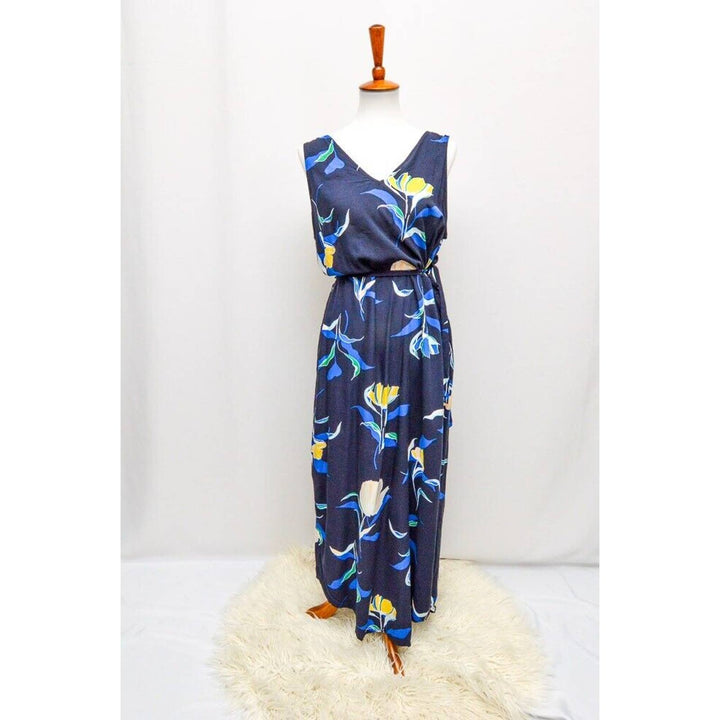 Super fun sleeveless dress with a side slit (a few stitches have popped but still wearable) Best fits a modern XL+. See measurements (taken flat)