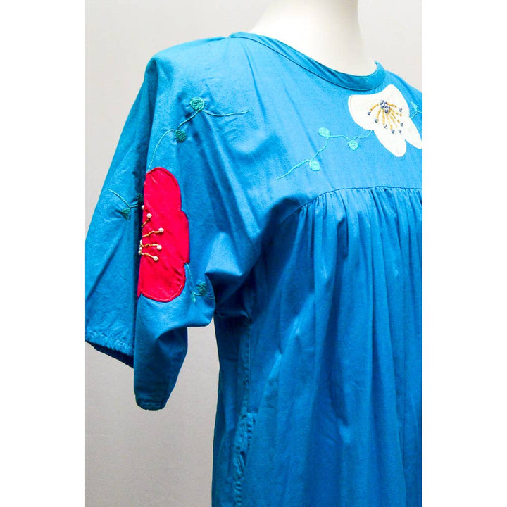 Vintage Sabrina by Mervins womens house dress blue M+ 80s